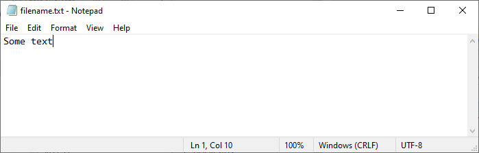 int main() { FILE *fptr; // Open a file in writing mode fptr = fopen("filename.txt", "w"); // Write some text to the file fprintf(fptr, "Some text"); // Close the file fclose(fptr); return 0; }