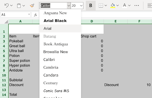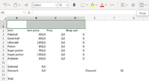 A1:D1(click the merged range) - Type Poke Mart