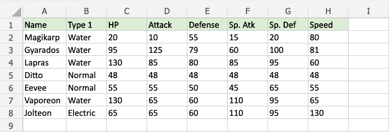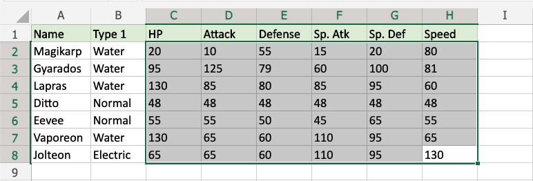 Now, the cells with text values equal to "Magikarp" will be highlighted in yellow: