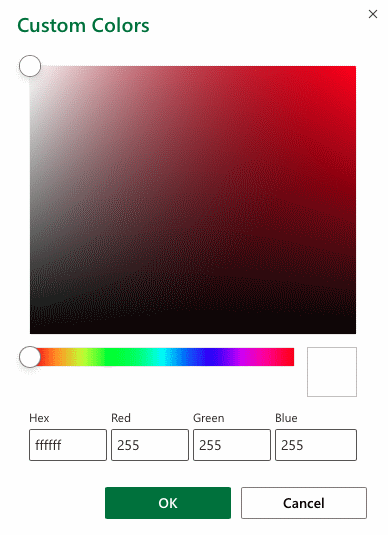 The "More Colors" option allows you to select custom colors by entering a RGB or HEX code.