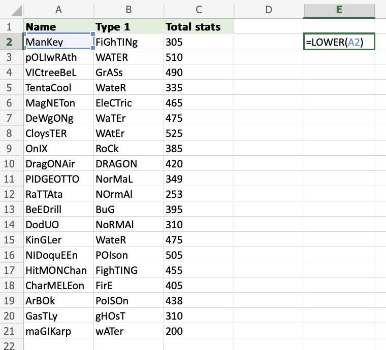 Excel LOWER Function