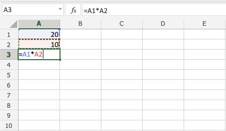 Let's have a look at an example where we multiply B(5) with the range A1:A10 using absolute reference and the fill function.