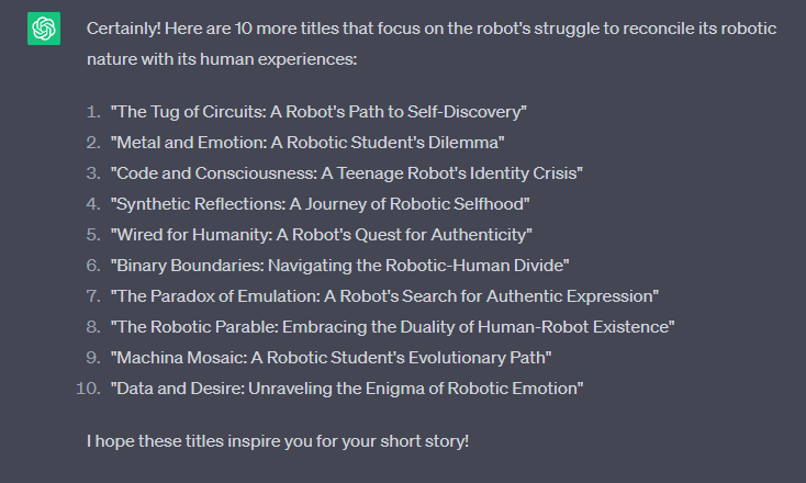 Using ChatGPT-3.5 to Find a Title