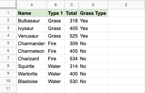 The condition is if the "Type 1" value for the Pokemon is "Grass".