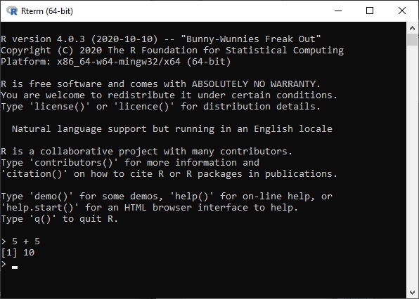 The screenshot below shows how it may look like when you run R on a Windows PC: